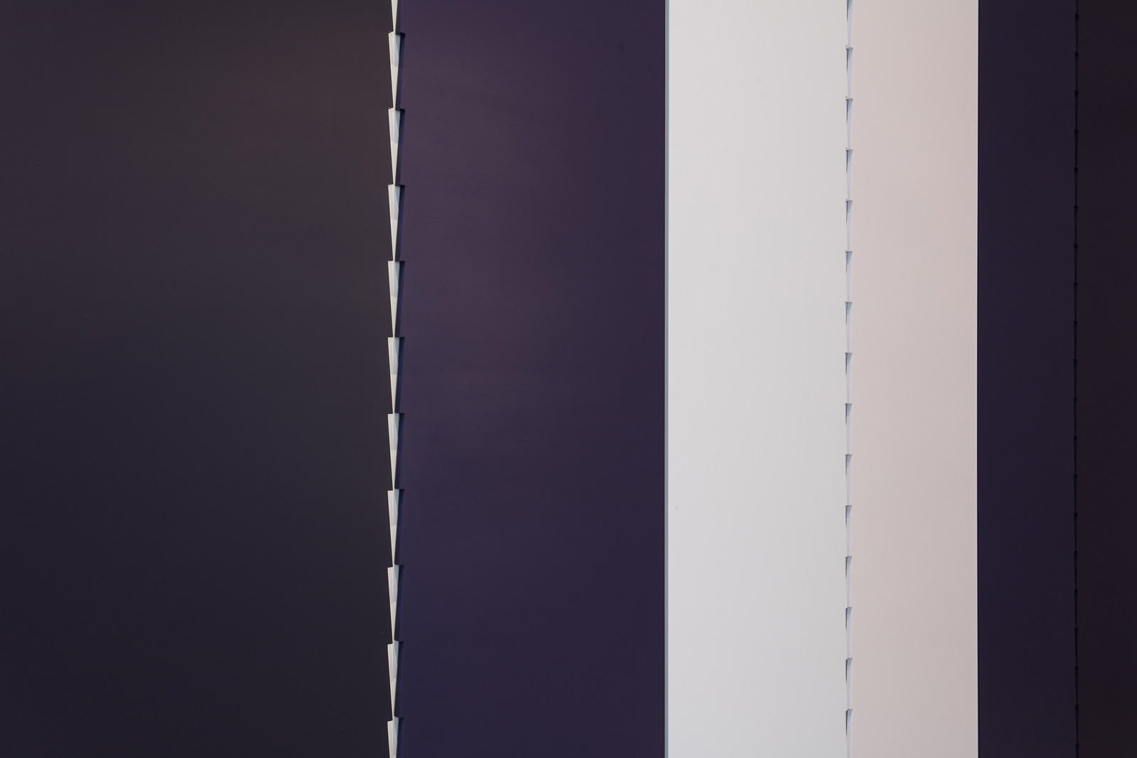 Aleppo at King’s Cross is a permanent commission for the Tapestry Building at King’s Cross N1C, designed by Niall McLaughlin Architects and completed in 2016.The work is a monumental ‘wall sculpture’ in pale pink, white and dark purples with a distinctive geometric form carved into six symmetrical panels. Tess Jaray’s focus on pattern and her ongoing exploration of geometric abstraction have been at the core of her practice throughout her life, whether making large scale works for the public realm or smaller works for domestic or gallery-based situations. This commitment to and development of abstract imagery has a clear parallel with architectural principles deployed in the creation of the Tapestry Building. The external facades display reference to Erwin Hauer’s twentieth century’ explorations of infinite continuous surfaces, and there are distilled versions of a Assyrian carpet pattern and Egyptian papyrus motif sourced from the highly influential The Grammar of Ornament (1856), a seminal design sourcebook by the architect and design theorist Owen Jones.